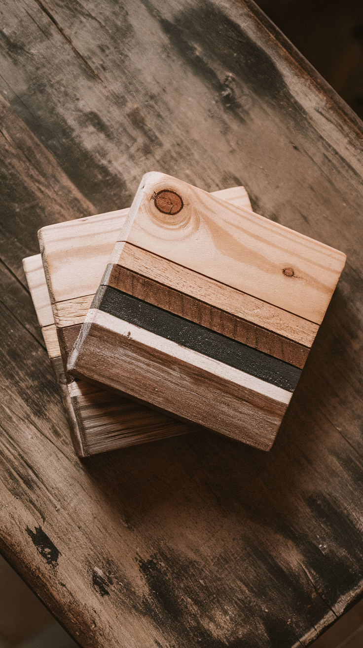 Find several small squares of walnut or oak from your scrap pile, invest the time to sand them to a high grit and apply a food-safe mineral oil, and glue a thin layer of cork to the bottom to create a custom set of coasters for your scrap wood projects that adds warmth and a relaxed vibe to your lounge area.