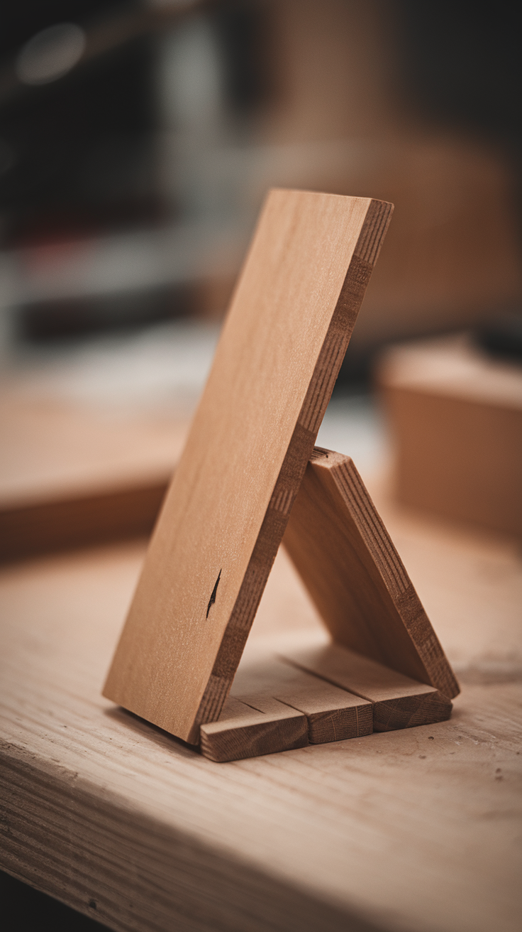 Take two rectangular pieces of scrap plywood or hardwood, invest the time to cut a notch halfway through each so they can slot together in an “X” shape, and sand the edges smooth to create a sturdy, portable stand for your scrap wood projects collection that looks sophisticated and deeply personal.