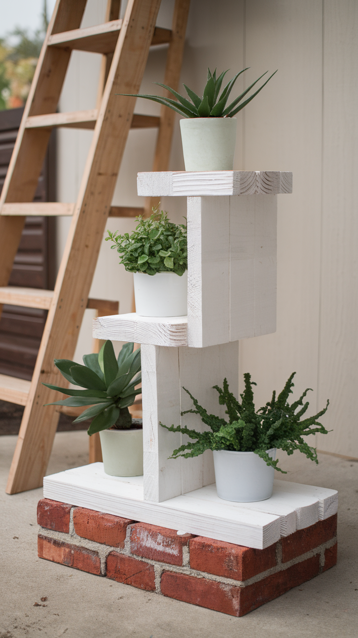 Purchase or salvage 2×2 wood scraps and some flat boards, take the time to build a simple ladder frame, and mount the boards as shelves to create high-end scrap wood projects and greenery displays that define your lounge area as a place of sophisticated luxury.
