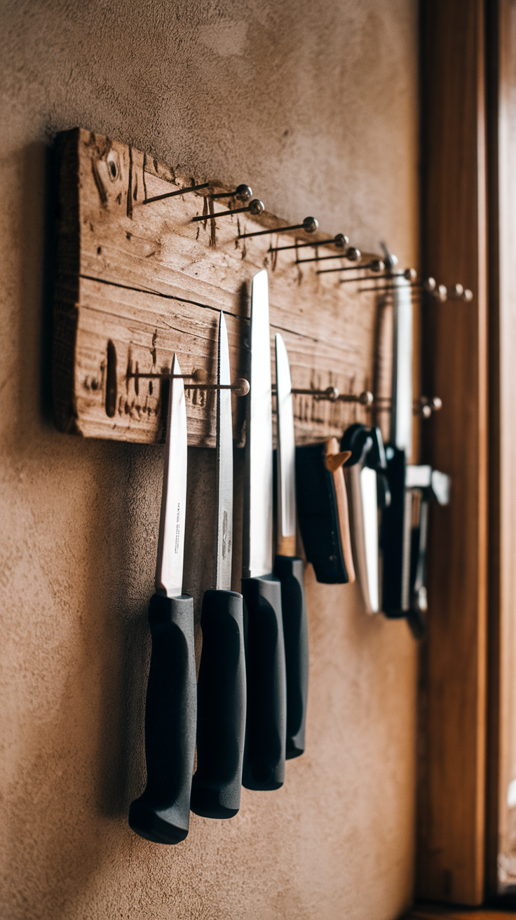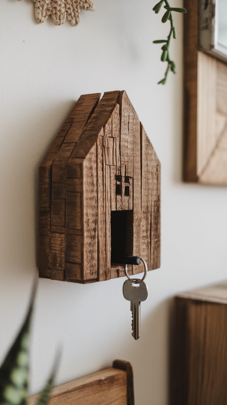 Take a beautiful piece of live-edge scrap wood, use a Forstner bit to drill shallow holes in the back to house strong neodymium magnets, and mount it to your wall to create a functional piece of scrap wood projects that enhances the organized experience of your room.