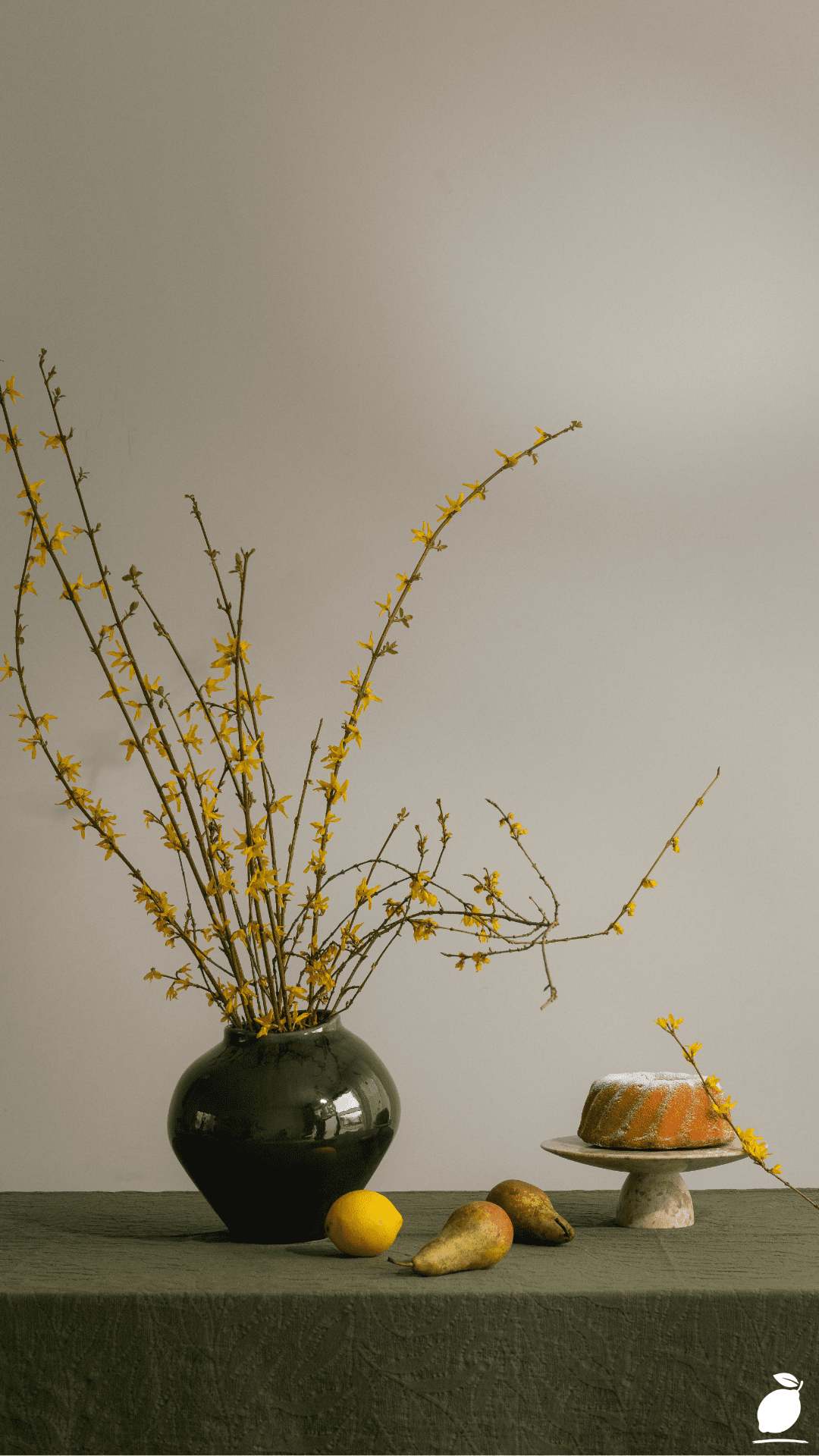 Imagine replacing that clutter with a serene scene: a dark vase filled with tall flowers, a soft green texture, a delicate cake dusted with powdered sugar. The colors are gentle, the mood is calm, and the entire table suddenly feels like a small moment. This is the power of Spring Table Decor, simple enough to transform everyday spaces into something uplifting, and this is what my husband likes.