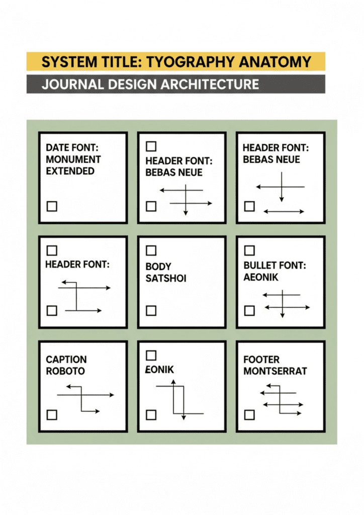 - The Monochrome Hierarchy: Use the best bullet journal fonts to establish a strict visual hierarchy. Assign one specific font style to “Professional Goals” and another to “Personal Growth.” Maintaining this monochrome, consistent look across your entire journal allows for instant navigation without the clutter of excessive color.