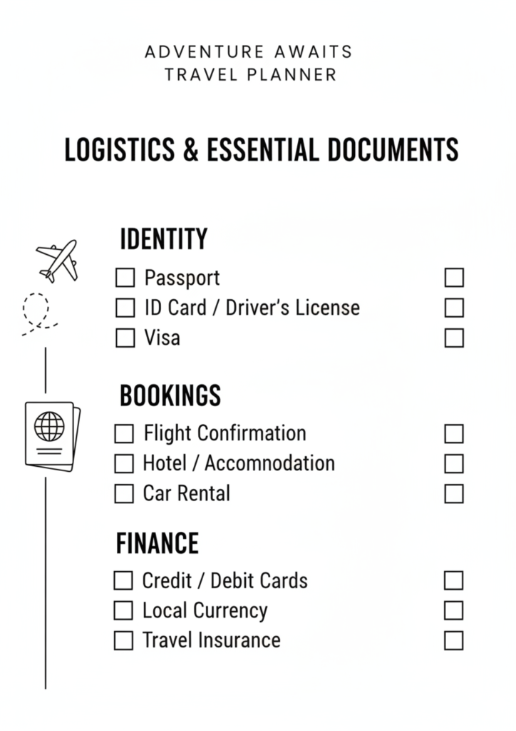 - The Emergency Document Sleeve: Fold the printable travel checklist and keep it in your carry-on exterior pocket. It serves as a quick-reference guide for your essential tasks, providing a sense of security if your phone battery dies or you lose signal.