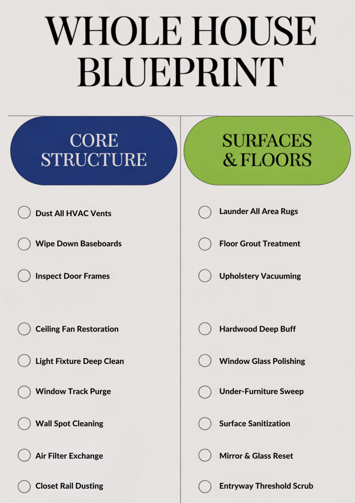 - The “Safe Place” Syndrome: Do not hide your spring cleaning checklist in a junk drawer. If it is out of sight, the mental overwhelm will return. Keep it on a high-end clipboard in the room you are currently addressing.